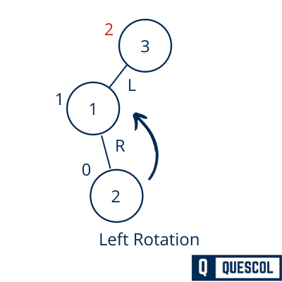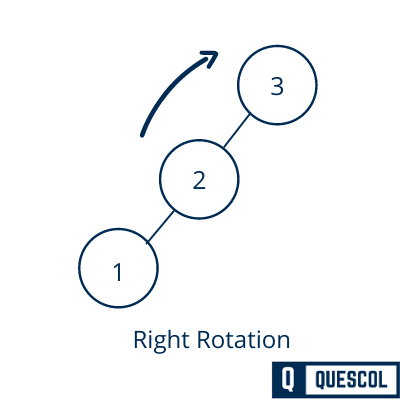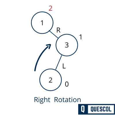 In the above example, node 3 has become unbalanced because its balanced factor is 2. Here We perform the right rotation by making 2 the root and 3 as the right node of 2.