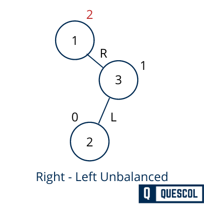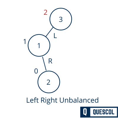 In this case, a node has inserted into the left subtree of the right subtree. So node 3 becomes an unbalanced node because its balance factor is 2 (2-0). So to balance it we perform left-right rotation means first left rotation and then right rotation.