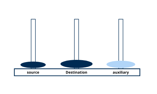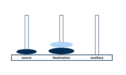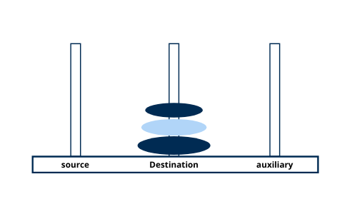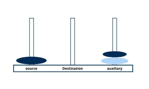 n-1disks from thesourcetower to theauxtower, usingdestas an intermediate tower. This step clears the largest disk at the bottom. - Then, it moves the